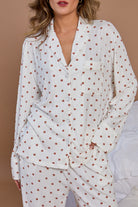Featuring a relaxed button-up shirt and elasticated trousers, it balances style with ease, making it ideal for lounging, slow weekend breakfasts, or layering under your favourite robe.