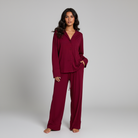 Made from luxuriously soft ribbed fabric, this set offers just the right amount of stretch and warmth - perfect for crisp evenings, cozy mornings, and everything in between. The rich burgundy hue brings depth and sophistication, making it a timeless addition to your Pyjama wardrobe.