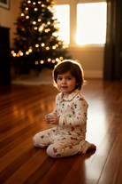 Bring a sprinkle of sweetness to their Christmas with our Christmas Kids Babyccino & Croissant Trouser Set! Covered in cheerful croissants, candy canes, and cocoa cups, these 100% cotton PJs are perfect for all the festive fun — from breakfast with Mum and Dad to racing to the tree!