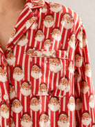 Make your Christmas mornings merry and bright in our Women's Christmas Santa Claus Stripe Trouser Set. With festive red stripes, a vintage-style Santa print, and soft 100% cotton fabric, these PJs bring warmth, comfort, and togetherness to the season.