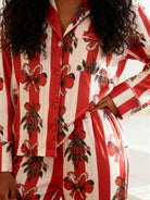 Wrap yourself in festive cheer with our Women’s Christmas Stripe Pyjamas – because Christmas magic is better when shared. Crafted from 100% soft cotton, these charming pyjamas feature red festive stripes sprinkled with holly, mistletoe, and pretty bows.