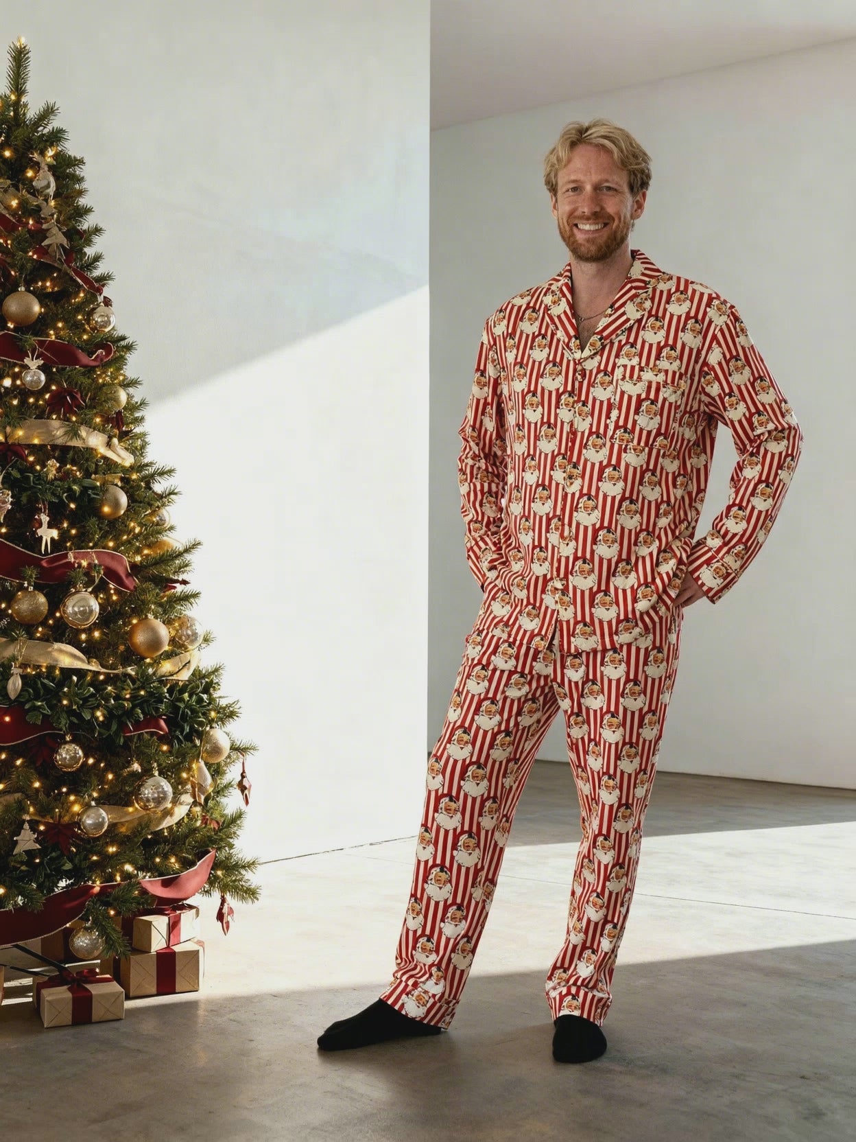 Keep it jolly with our Men’s Santa Stripe Pyjamas — featuring festive red stripes and a nostalgic Santa print for a dash of classic Christmas charm. Made from 100% breathable cotton, they’re comfy enough for lazy mornings, family movie nights, and Christmas Eve traditions.
