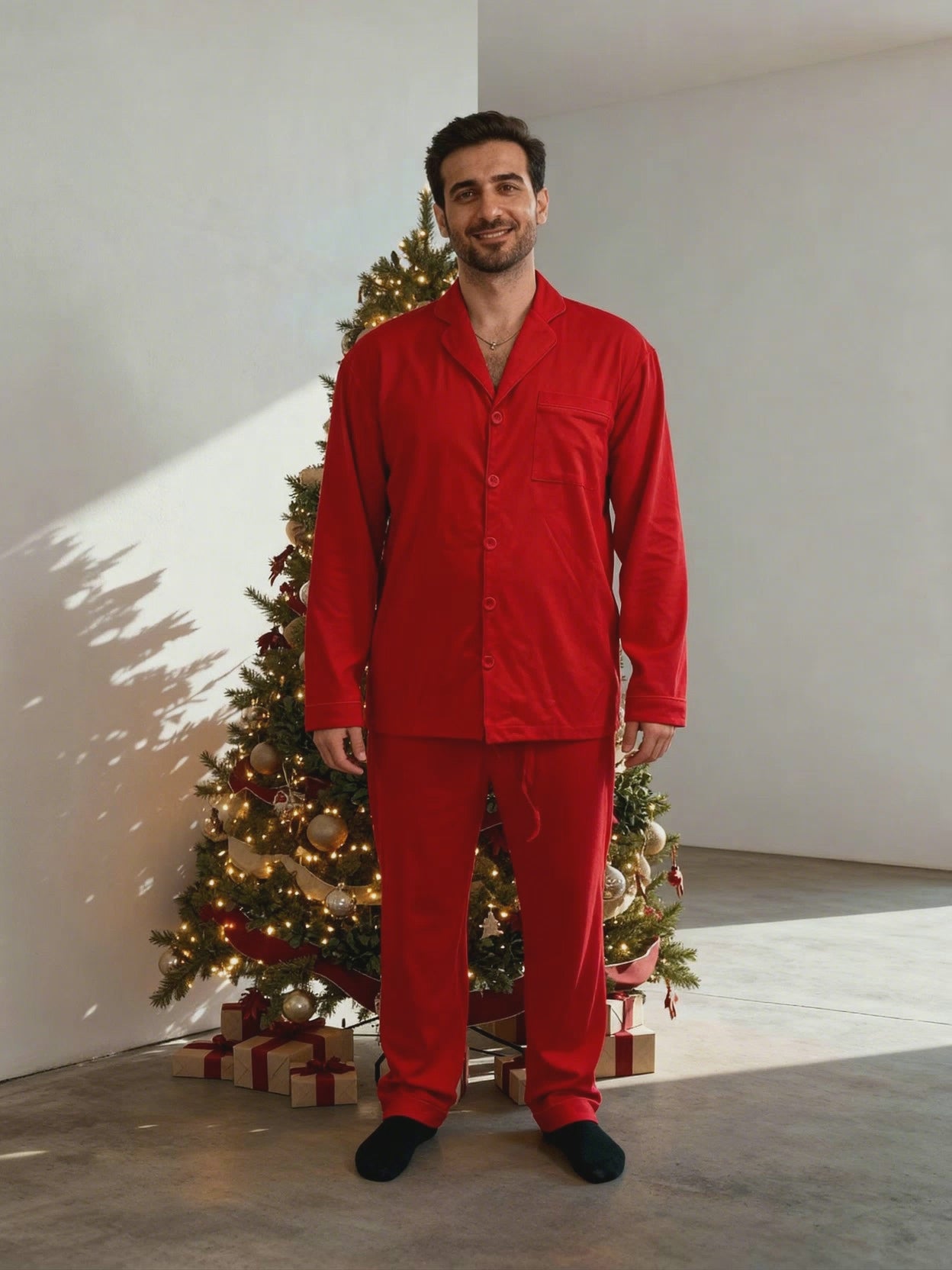 Keep it classic this Christmas with our Mens Christmas Soft Red Trouser Set. Crafted from 100% soft cotton for all-night comfort, these festive PJs are perfect for fireside lounging, movie marathons, and matching with the ones you love most.