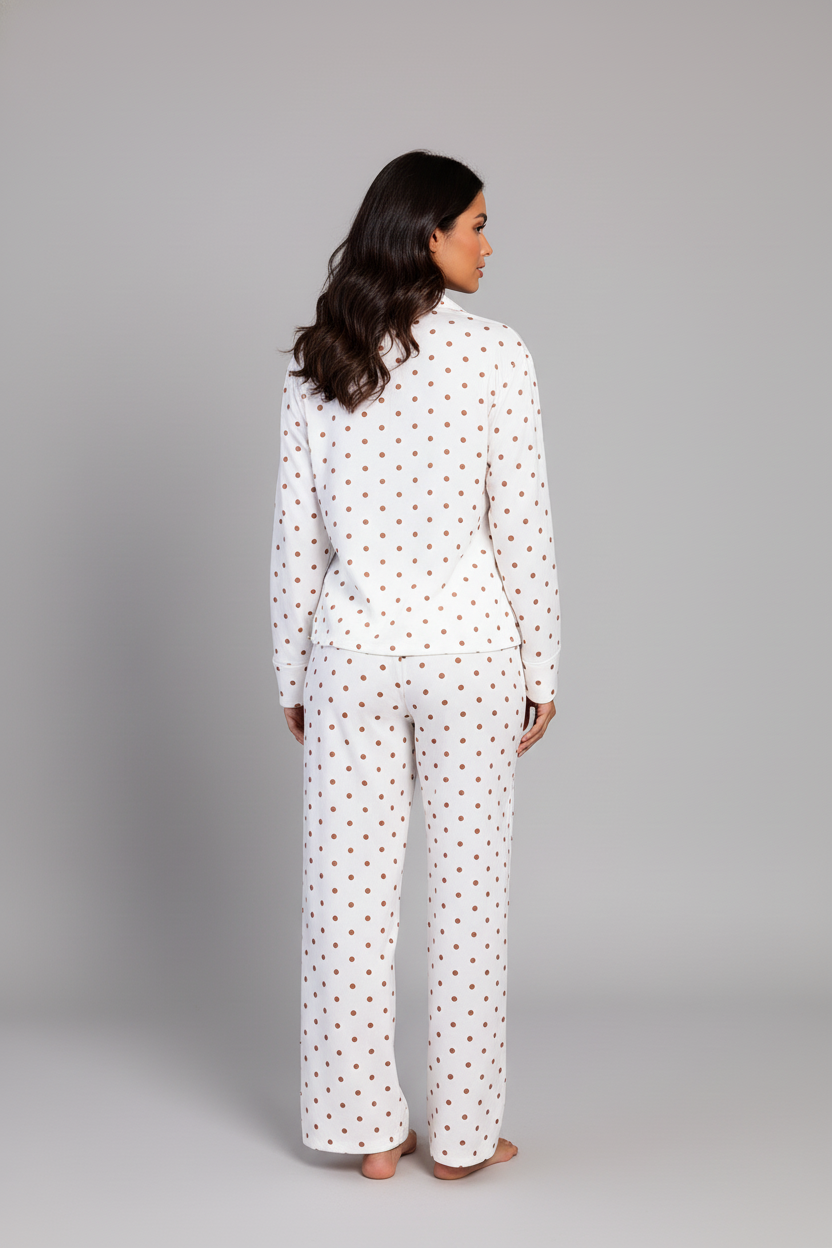 Made from soft, breathable pointelle fabric, this set is designed for comfort that feels effortlessly stylish. The timeless polka dot pattern adds a playful touch, while the subtle texture of the fabric brings depth and warmth—perfect for cooler mornings and relaxed evenings at home.