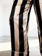 Exude understated elegance with our Black Stripe Satin Trouser Set.
