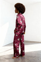 Featuring a relaxed button-up top and elasticated trousers, this set blends comfort with bold, confident style. Ideal for cozy nights at home or elevating your at-home loungewear with a touch of flair.
