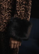 Crafted from rich, indulgently soft velvet, this set is designed to make a statement while keeping you cozy through the colder months. The elegant leopard print brings a touch of fierce sophistication, while the detachable faux fur cuffs add a luxurious, versatile finish—wear them for extra glamour or remove them for a sleek, refined look.