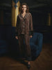 The relaxed button-up shirt and wide-leg trousers create a flattering silhouette that feels as comfortable as it looks chic. Perfect for evenings in, festive gatherings, or whenever you want your loungewear to feel a little extraordinary.