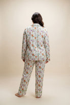 Featuring a relaxed button-up shirt and elasticated waist trousers, this set offers the perfect balance of style and ease - whether you're lounging at home or indulging in a slow Sunday breakfast in bed.