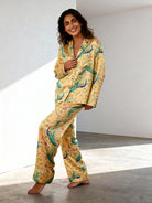 Featuring a relaxed button-up shirt and fluid trousers with an elasticated waistband, this set is designed for elevated comfort—perfect for slow evenings, luxurious mornings, and everything in between.