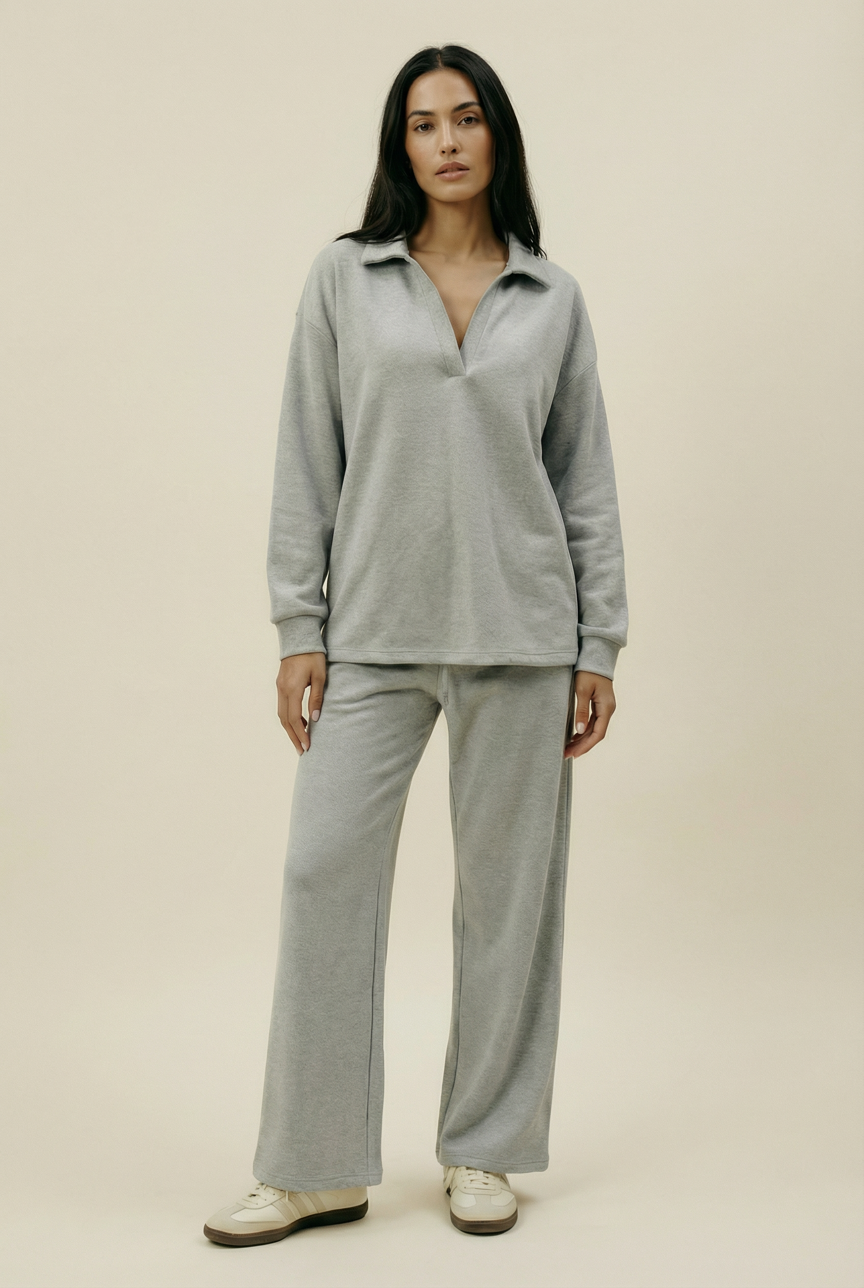 Grey Marl Collar Detail Lounge Set