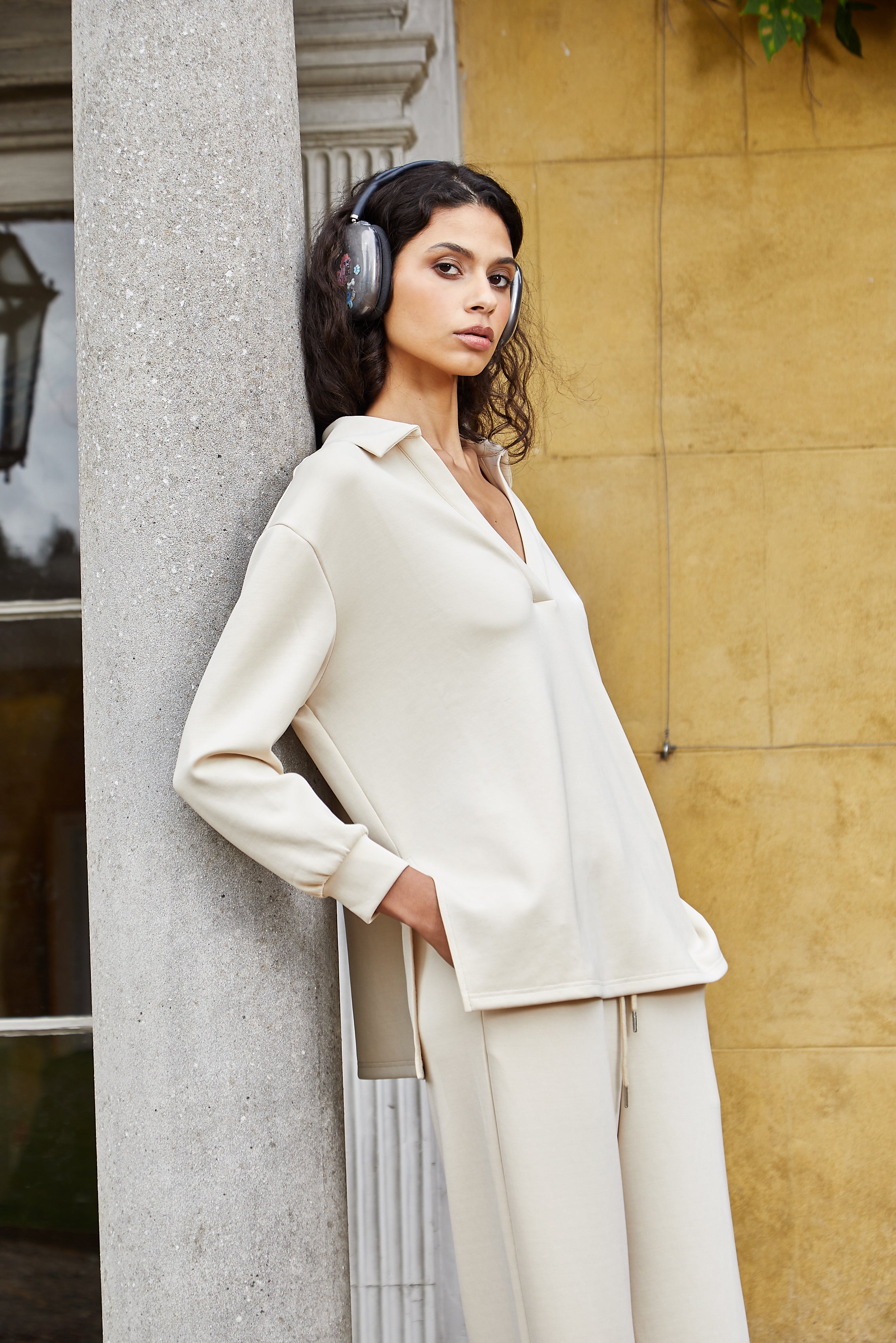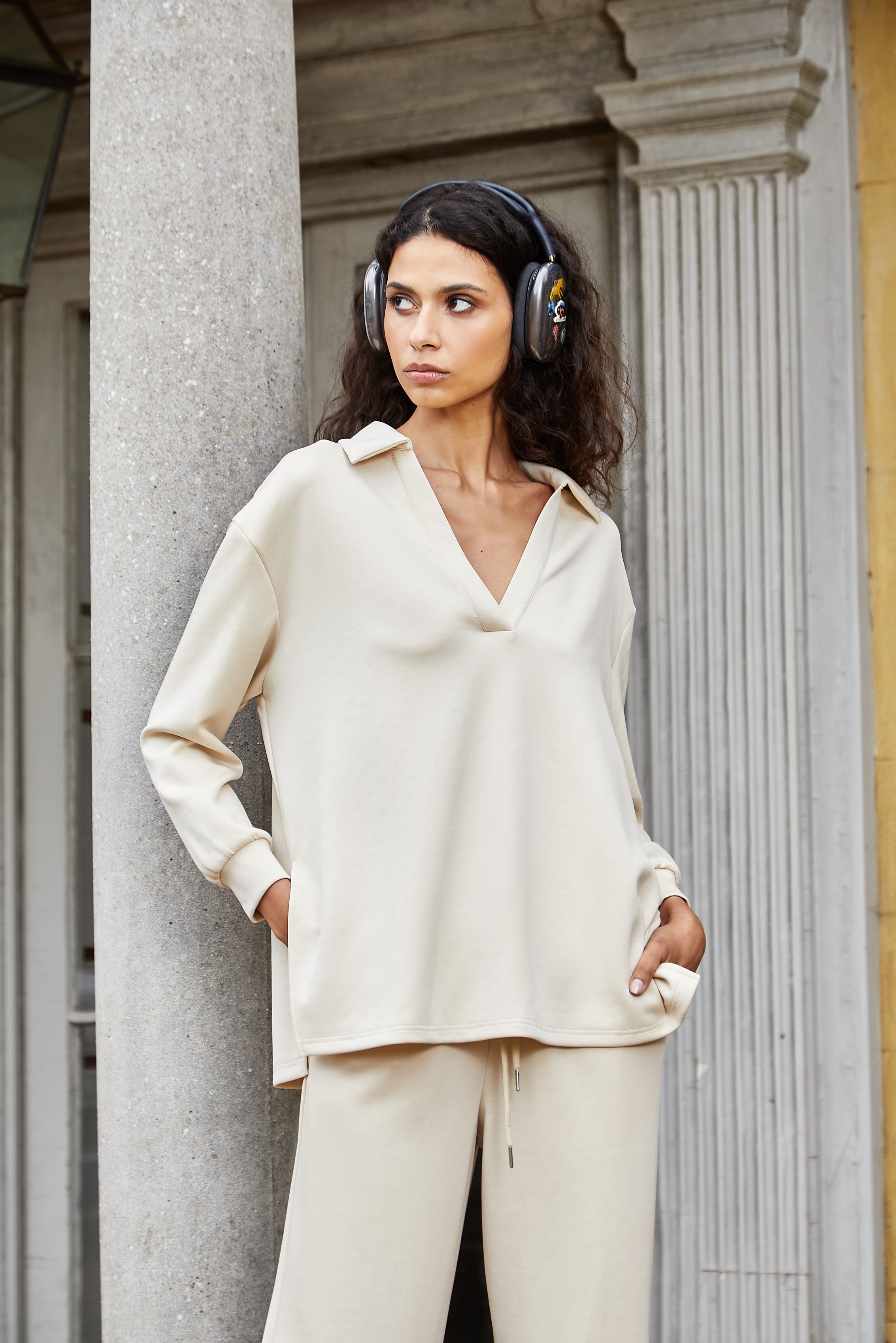 Women's Collar Lounge Set - Stone
